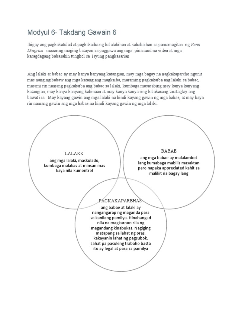 Venn Diagram Sa Babae At Sa Lalaki Brainly Ph